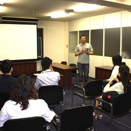 9階フロアの素敵なスペース、銀座テラスです。テラスルーム内で壁をスクリーンに上映、上映後には配給会社のユナイテッド・ピープル社の関根代表をゲストに、会社設立の思いや台北カフェストーリーについてなど、いろいろお聞かせいただきました。